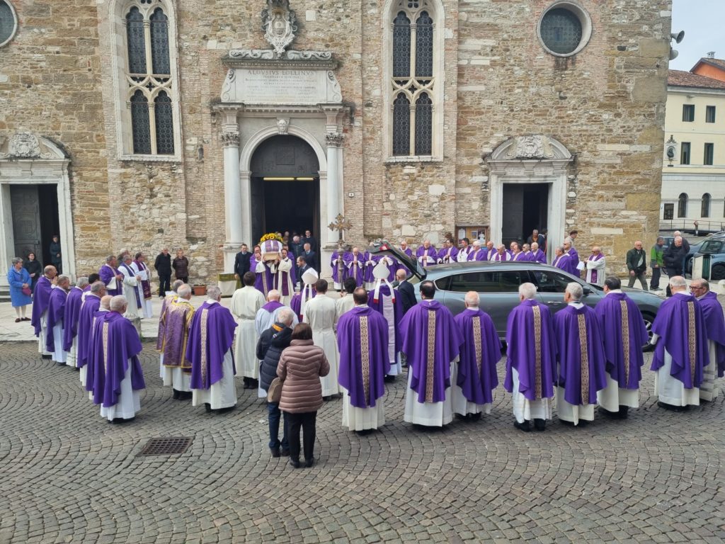 C’era davvero tanta gente in Cattedrale questa mattina (lunedì 18 marzo) per i funerali di don Giuliano Follin. Gli stalli del presbiterio erano tutti occupati dai confratelli, riuniti attorno al vescovo Renato Marangoni e al vescovo emerito Giuseppe Andrich. Nell’ampia navata gente venuta dalle varie parrocchie di cui è stato pastore, persone a lui legate da amicizia. Un giovane della parrocchia di Borgo Piave ha affidato al cielo questo messaggio: «Resterai nei cuori di tutti noi». Anche un rappresentante di Borgo Piave, prima dei riti di congedo, ha espresso con calore la gratitudine della comunità per gli anni passati insieme.