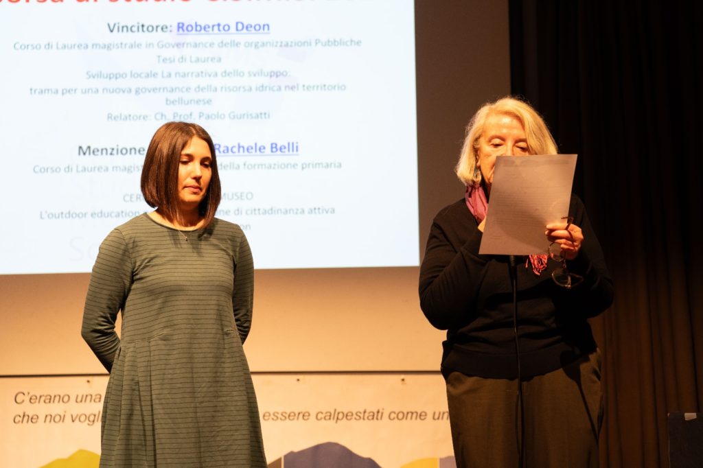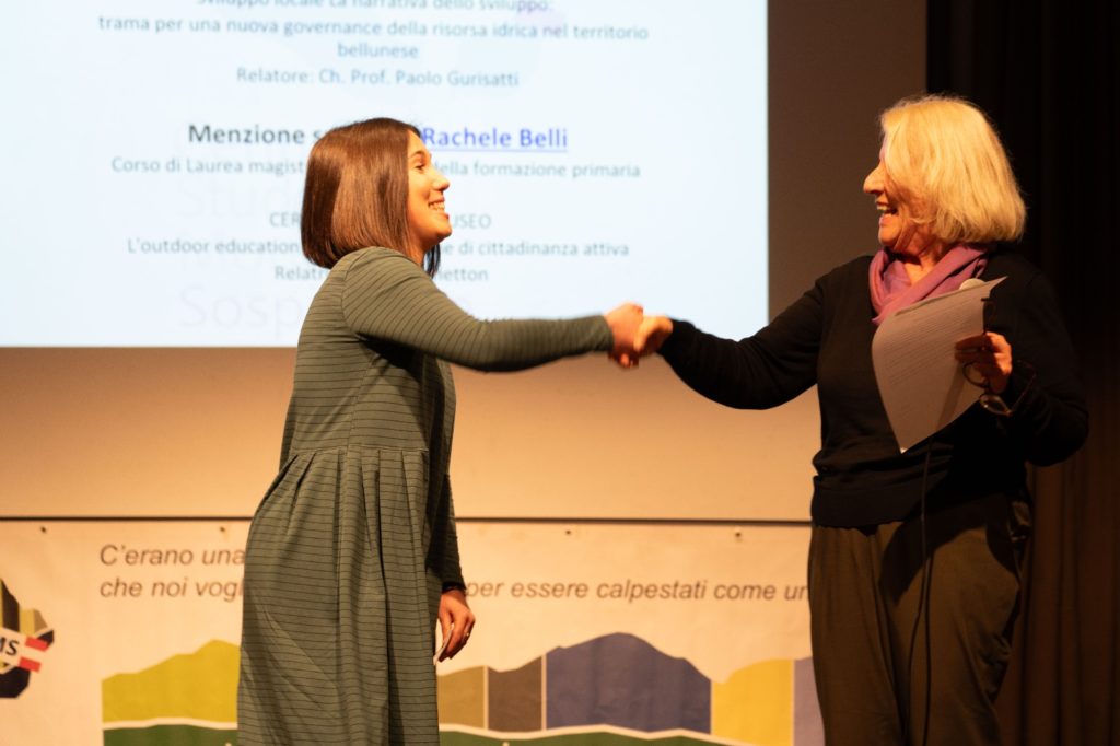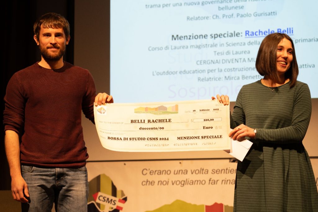 Una menzione speciale è stata attribuita a Rachele Belli per la tesi Cergnai diventa museo. L’outdoor education per la costruzione di cittadinanza attiva, discussa all’Università di Padova. Il lavoro esplora il legame tra didattica all’aperto e partecipazione attiva, attraverso un’esperienza condotta con i bambini e le insegnanti della Scuola dell’Infanzia di Cergnai. La ricerca è stata ritenuta particolarmente affine ai principi del Centro Studi Montagna Sospirolese, per il suo valore educativo e il suo impatto sulla comunità.