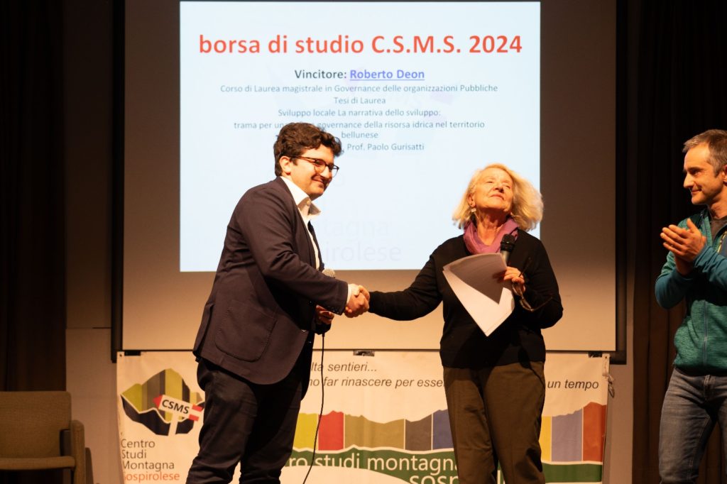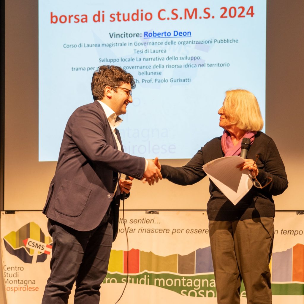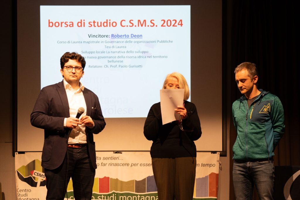 Uno dei momenti centrali dell’assemblea è stata la consegna della Borsa di Studio 2024 del Centro Studi Montagna Sospirolese, assegnata a Roberto Deon per la sua tesi magistrale intitolata Sviluppo locale. La narrativa dello sviluppo: trama per una nuova governance della risorsa idrica nel territorio bellunese, discussa all’Università Ca’ Foscari di Venezia. La ricerca affronta il tema della gestione dell’acqua come risorsa strategica per lo sviluppo del territorio bellunese, in vista della scadenza delle concessioni idroelettriche nel 2029. La commissione ha apprezzato la capacità dell’elaborato di individuare nuovi modelli di governance, coinvolgendo le diverse realtà istituzionali e imprenditoriali locali.