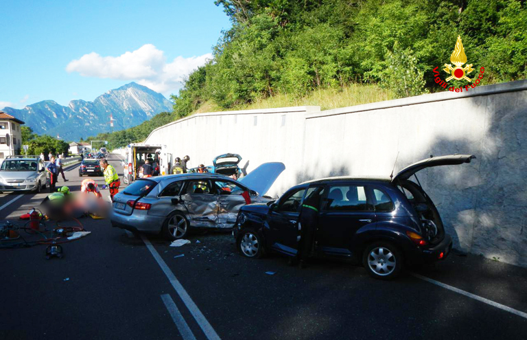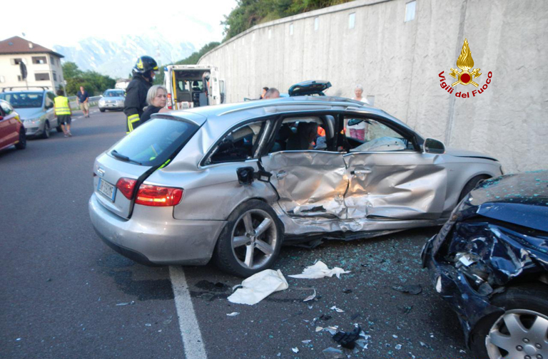 Incidente stradale domenica 2 luglio nel tardo pomeriggio nei pressi di Levego (Belluno). Sul largo rettilineo tre auto sono state coinvolte nello schianto e quattro persone sono rimaste ferite, tre in modo grave. Prognosi riservata per il bellunese Renato Candeago, alla guida di un’Audi station wagon, per Sara Tellarini che viaggiava al suo fianco e per Renato Pavei di Levego alla guida di un’Opel Corsa; ferite lievi per l’uomo di Jesolo che guidava una Chrysler Cruiser. L’incidente si è verificato verso le 18 sulla Provinciale 1, quando l’Audi diretta a Belluno sembra abbia invaso parzialmente la corsia opposta scontrandosi con l’Opel; la Chrysler ha poi colpito la fiancata dell’Audi, che era rimasta di traverso sulla strada.