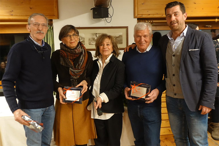 Nella foto la consegna delle targhe agli Ambasciatori Pollicino: da sinistra Valerio De Pellegrin, la figlia di Arrigo Galli, Morena Pavei (presidente), Rino Ioriatti ed Enrico Collarin.