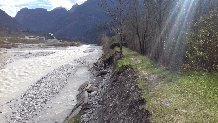 In particolare sarà realizzata in sponda destra del Cordevole una difesa in massi di pietra naturale, previa ricostruzione del rilevato arginale con materiale arido, e in sinistra verrà riparato il danno al rivestimento di sponda di calcestruzzo e pietrame. Sarà, inoltre, eseguita una approfondita indagine per verificare lo stato di efficienza delle opere e, successivamente, verranno realizzati gli interventi più appropriati ed efficaci. Infine sarà ripulito l’alveo dalla vegetazione arbustiva che ostacola il libero deflusso delle acque.