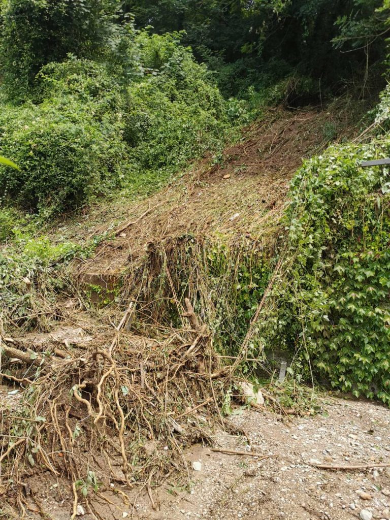 Scivola a valle il versante sotto via Rudio, in città a Belluno, fango e detriti arrivano alle case di via San Francesco.