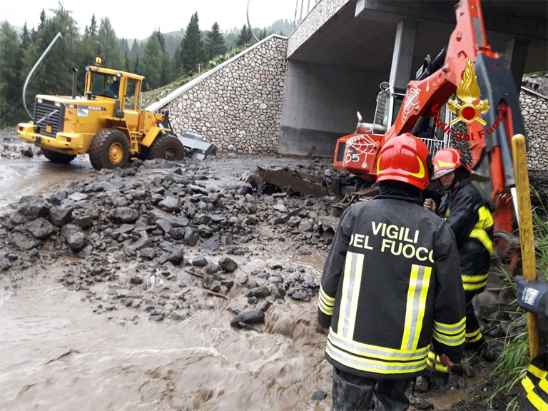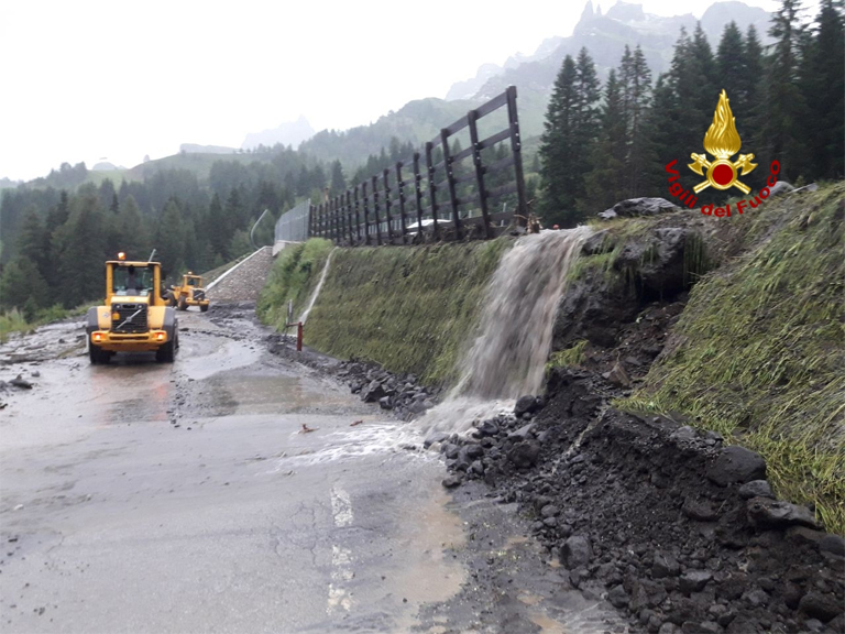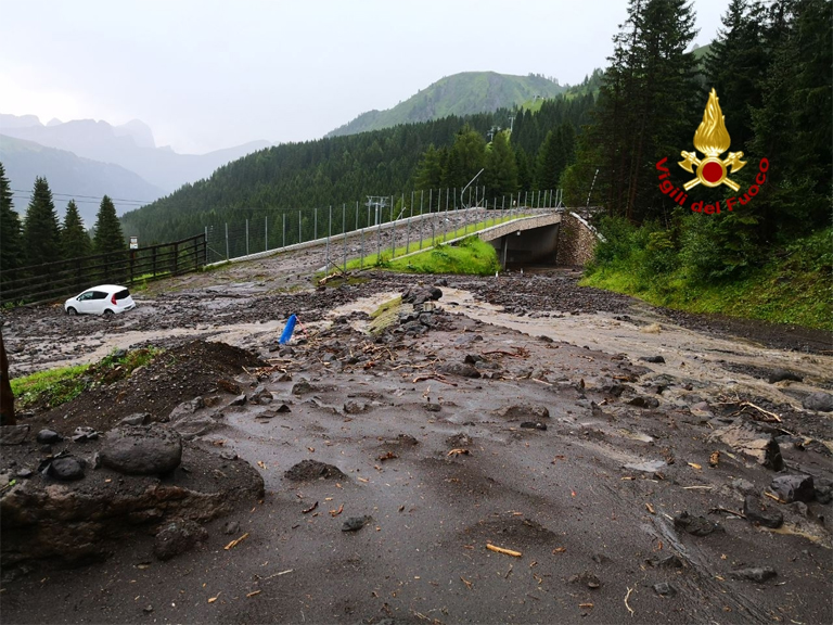 Nel pomeriggio di ieri, venerdì 26 luglio, dalle ore 16, il territorio della provincia di Belluno è stato interessato da forti temporali, anche con molto vento. Le piogge intense – riferiscono i vigili del fuoco – hanno provocato diversi smottamenti in più punti, che hanno riguardato in particolare la strada regionale 48 da Arabba verso passo Pordoi, provocando una colata detritica importante nei pressi del ponte Vauz che ha interessato anche la partenza degli impianti a fune.