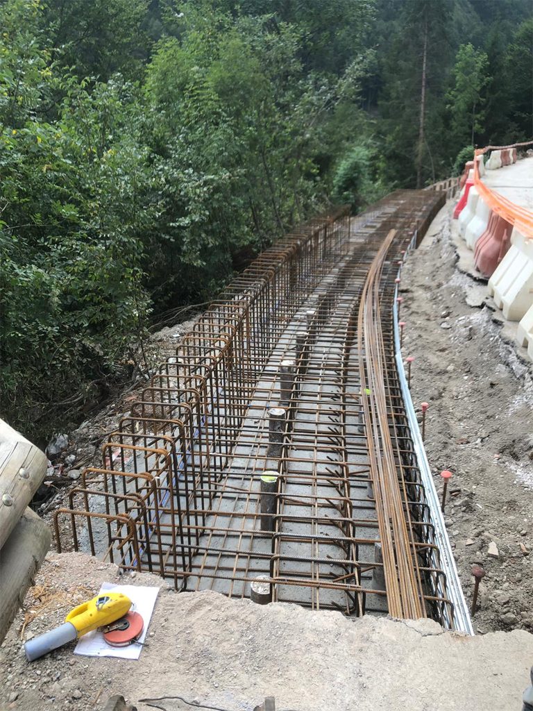 Una volta completata l’esecuzione del cordolo, è prevista la ricostruzione completa della sede stradale con tutte le opere accessorie per complessivi 200 metri. L’operazione intende ripristinare il sottofondo e il manto bituminoso, per agevolare il sicuro allontanamento delle acque di ruscellamento dall’area in frana (che è stato identificato come causa amplificatrice del fenomeno di crollo nell’area).