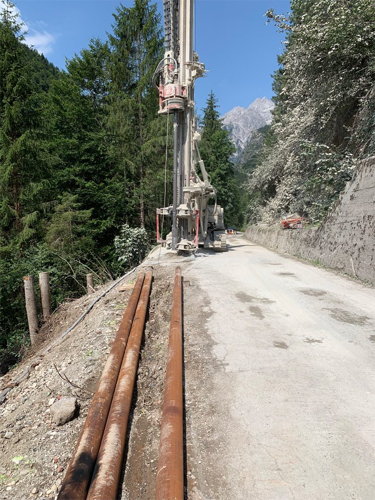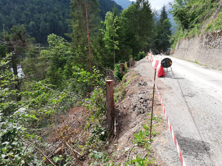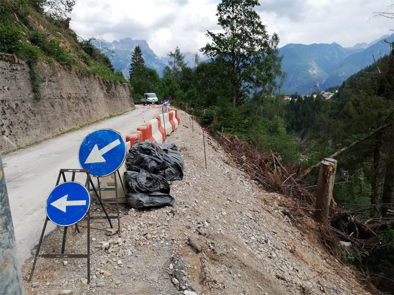 Per questo la Provincia di Belluno ha predisposto un intervento volto al miglioramento della sicurezza del percorso stradale. I tecnici del Servizio difesa del suolo hanno previsto la realizzazione di opere costituite da un cordolo in cemento armato, ancorato a micropali, per una lunghezza di 125 metri, proprio in corrispondenza del ciglio in frana, sul quale successivamente verrà montata una barriera stradale. Il cordolo di testa, in corso di realizzazione, presenta quote e dimensioni idonee a garantire la necessaria pendenza della sede stradale, in modo da allontanare le acque di ruscellamento dal corpo frana. I micropali della lunghezza di 8 metri sono già stati realizzati nel corso dei mesi di luglio e agosto.