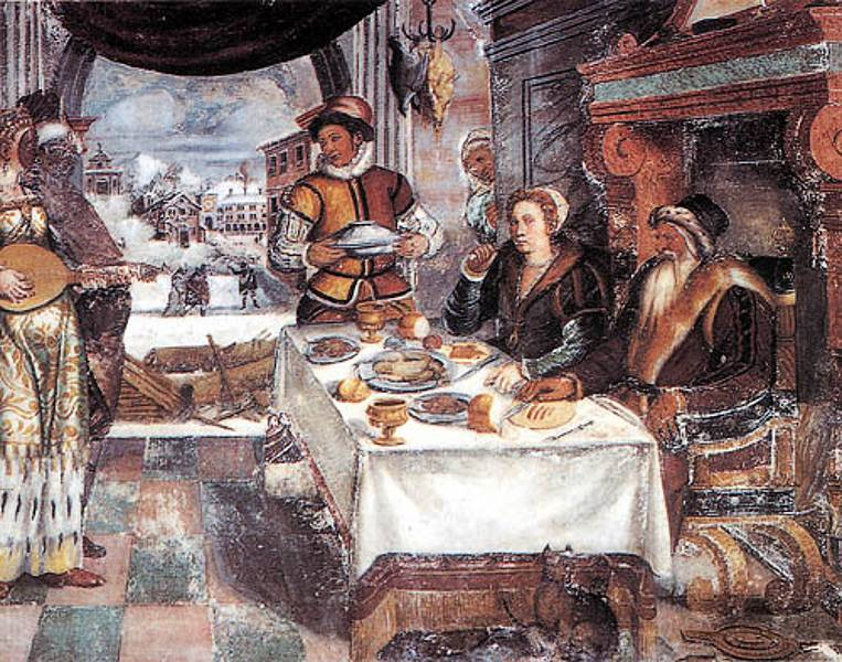 La Biblioteca civica di Belluno e la Trattoria l’Oasi organizzano, per mercoledì 20 novembre alle ore 20, presso la sede della trattoria in via Triches 25 a Limana, un evento molto particolare. Si tratta di una cena basata su ricette rinascimentali ispirata all’affresco dell’inverno di Cesare Vecellio che si trova a Palazzo Piloni di Belluno. Vista l’ambientazione storica l’evento è stato denominato «A cena con i conti Piloni» (precederà la cena una breve introduzione sulla famiglia Piloni e la storia della collezione dei meravigliosi libri dipinti da Cesare Vecellio).
