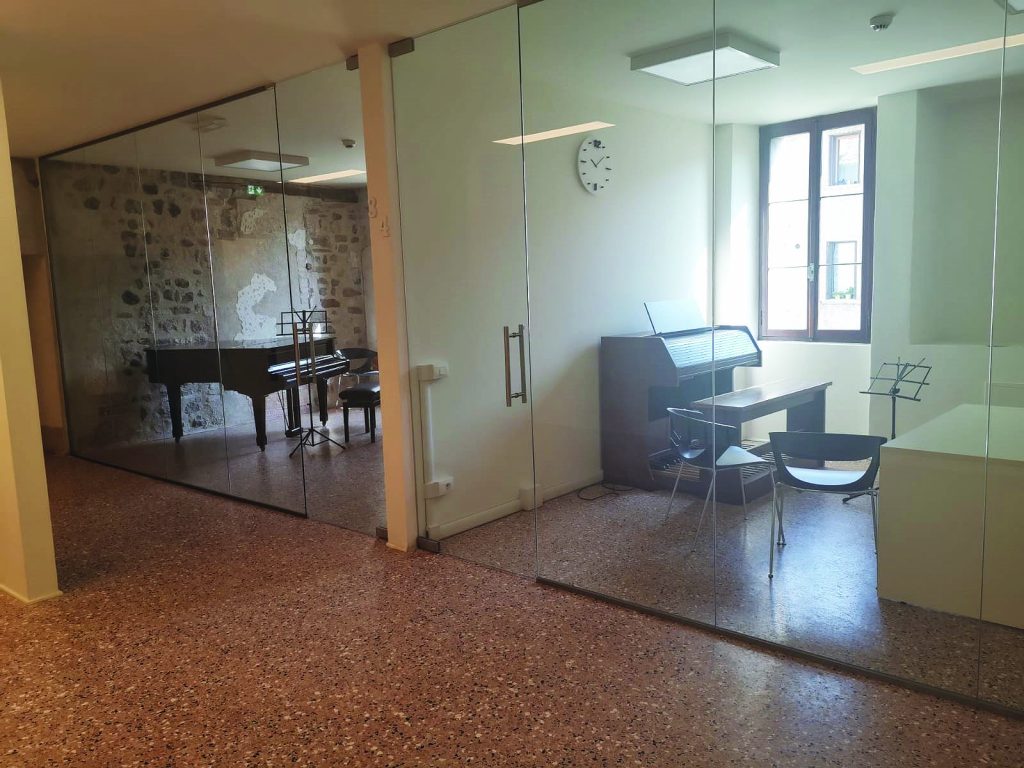 L’Auditorium ha avuto un primo significativo intervento di 1,1 milioni di euro, reso possibile da un importante contributo della Fondazione Cariverona e dal cofinanziamento di 100 mila euro da parte del Comune di Belluno, che ha consentito il rinnovo degli spazi e degli arredi dedicati alla Scuola di musica Miari e alla banda cittadina Filarmonica di Belluno 1867, che proprio nell’Auditorium svolgono la loro importante attività, ora sospesa a causa dell’epidemia da Covid-19. In particolare, in occasione di questo primo intervento è stato eseguito il miglioramento sismico, rifatta una falda del tetto – lavoro necessario per la messa in sicurezza e per la tutela della struttura – ricostruita la centrale termica e sono state create aule moderne e insonorizzate, dotate dell’attrezzatura necessaria per l’attività didattica.