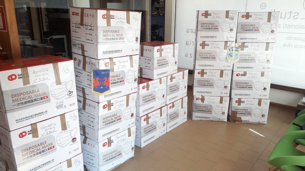Di queste 144.000, circa 80.000 sono state riservate al territorio della Regione Veneto; 26.500 al territorio Friuli Venezia Giulia; 27.000 alla Regione Trentino-Alto Adige. La provincia di Belluno ne ha potute acquisire circa 12.000. La destinazione delle mascherine per il territorio bellunese, per il Trentino – Alto Adige e per il Friuli Venezia Giulia è stata coordinata dal Rotary Club Belluno a favore principalmente delle associazioni di volontariato impegnate nei servizi di supporto sanitario con ambulanza. Il Service dedicato ha consentito quindi di far pervenire in provincia di Belluno un buon numero di questi dispositivi, che sono stati distribuiti capillarmente sul territorio ad ogni singola associazione con l’attività diretta dei soci del Rotary Club Belluno.