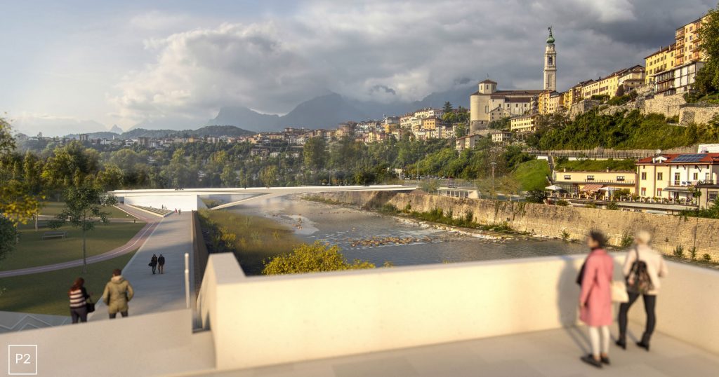 La commissione giudicatrice. «Da una decina d’anni la Fondazione è impegnata a promuovere il concorso quale strumento privilegiato per gestire le trasformazioni del nostro territorio, annoverando al suo attivo una quindicina di bandi», spiega il presidente della Fondazione, Angelo Da Frè. «L’utilizzo della piattaforma informatica ConcorsiAWN, messa a disposizione dal Consiglio Nazionale degli Architetti, permette lo svolgimento di tutta la procedura in forma anonima, privilegiando la valutazione dei progetti rispetto ai loro autori, che vengono individuati solo alla fine del procedimento. Lo svolgimento in due gradi consente di selezionare le cinque soluzioni più meritevoli e definire la graduatoria finale; la riprova della validità di tale strumento, nel caso specifico, è l’assoluta qualità del progetto premiato. Va dato merito anche al Comune per aver scelto questa procedura». «Oggi un’opera di spessore architettonico elevato come quella che ha vinto questo concorso riuscirà a sviluppare, in tutto il versante di Belluno che guarda verso il Piave, un punto di riferimento per chi a Belluno ci arriva e per chi ci vive, aggiungendo valore all’immagine della città», ha messo in evidenza Fabiola De Battista, presidente provinciale dell’Ordine degli Architetti, membro della Commissione giudicatrice insieme a Simone Gobbo, Pietro Sommavilla, Veruska Bortoluzzi, Carlo Erranti. «Il nuovo ponte impreziosirà le viste sulla città e sulla particolare morfologia del Piave, rivitalizzando un’intera area dal punto di vista sociale, economico, ma soprattutto quotidiano», ha proseguito De Battista. «La collaborazione tra architetti e ingegneri è fondamentale, così come quella tra amministrazione e ordini professionali. Ci fa onore vivere in una città che apprezza opere architettoniche importanti. Martina Reolon