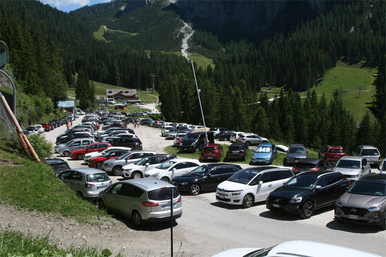 La foto mostra con chiarezza come sono andati turisticamente i fine settimana ai piedi del Civetta, complice il bel tempo.