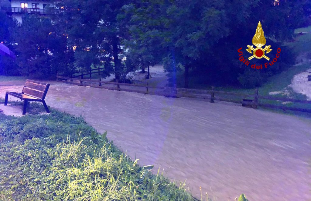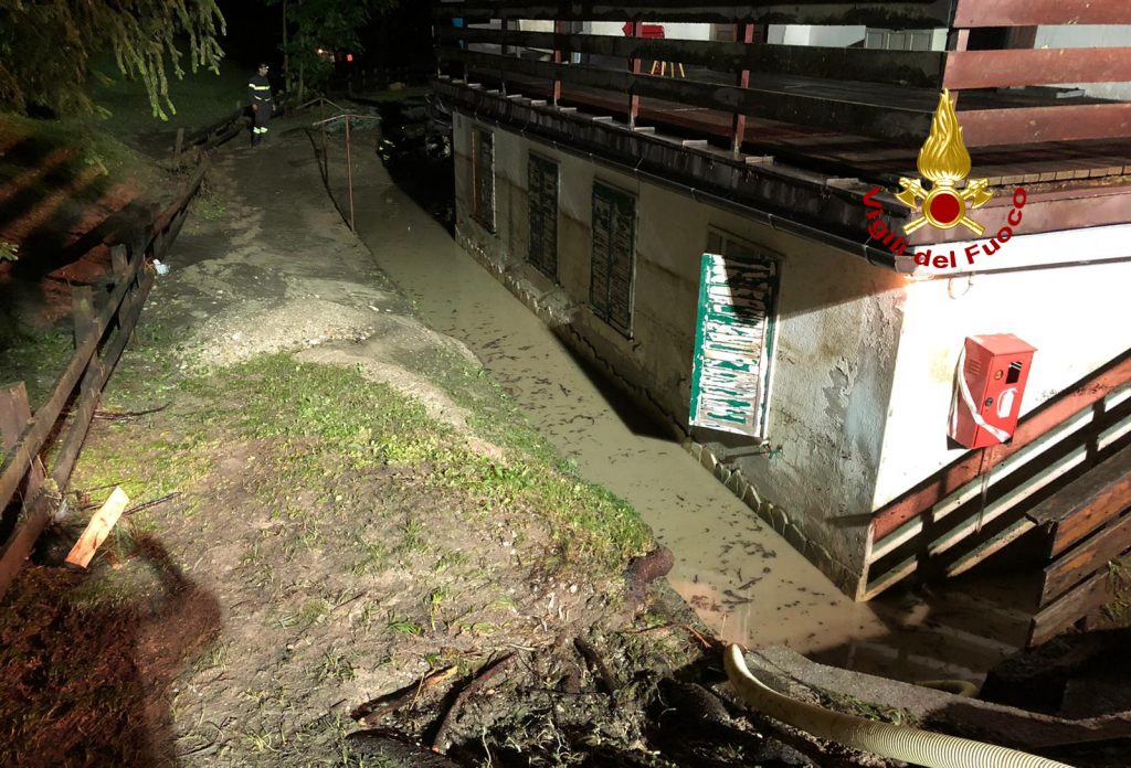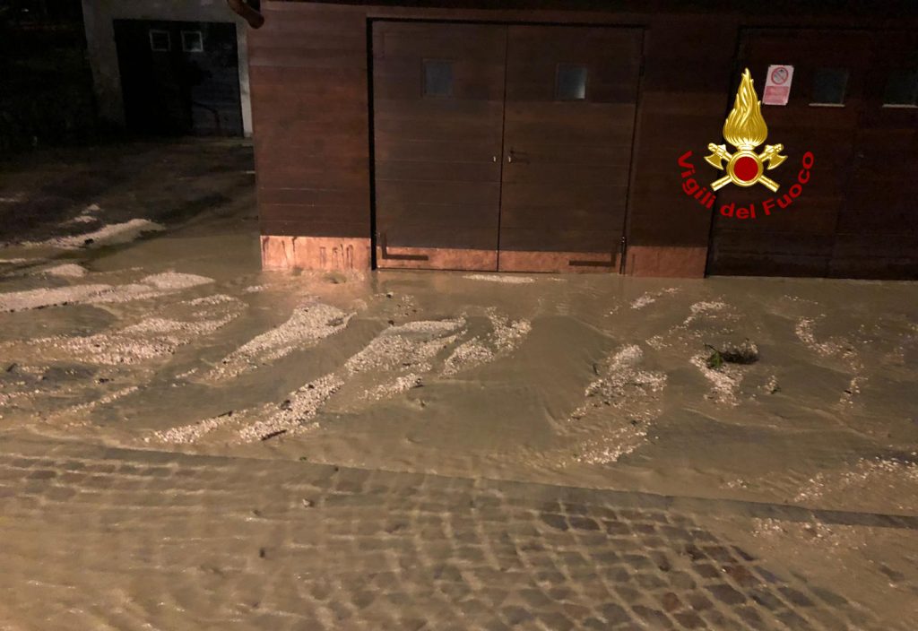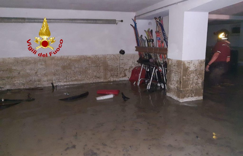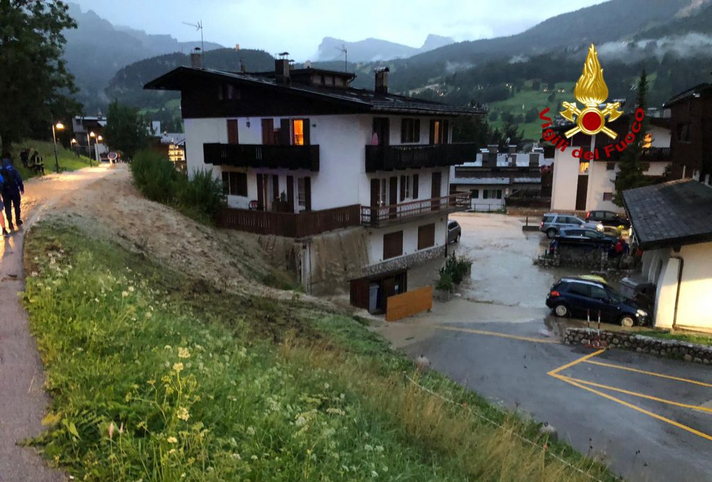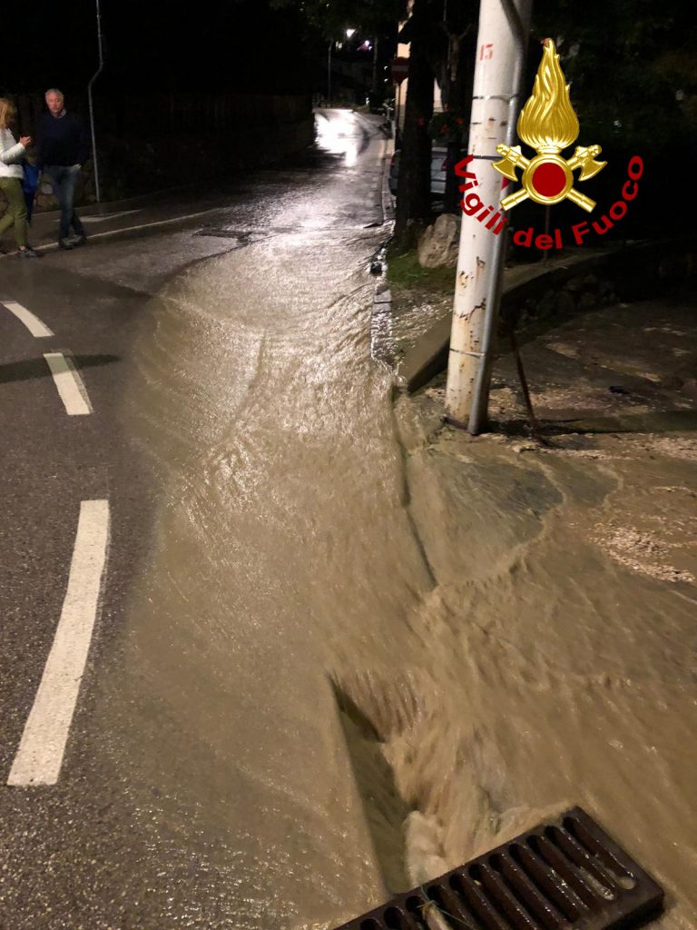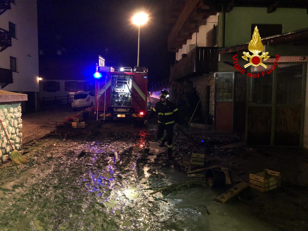 Strade come fiumi e allagamenti. Le immagini fornite dai Vigili del fuoco mostrano la violenza con cui la pioggia si è abbattuta ieri sera, di nuovo, nella parte alta della provincia, in particolare a Cortina.