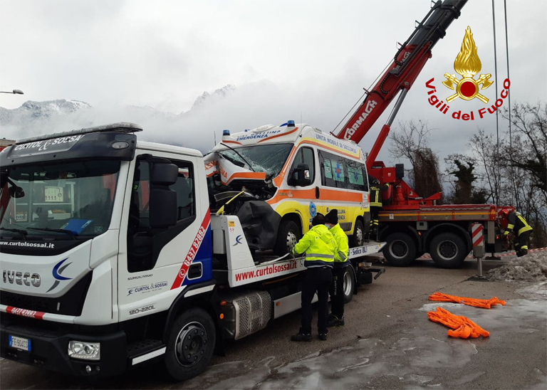 I pompieri, arrivati sul posto, hanno messo insicurezza l’ambulanza, mentre il paziente e i tre volontari a bordo, feriti in maniera lieve, venivano assistiti dai sanitari di altre due ambulanze inviante sul posto. Tutte e quattro le persone sono state trasferite in ospedale. L’ambulanza incidentata è stata poi recuperata con l’autogrù dei vigili del fuoco per essere portata via dal soccorso stradale.