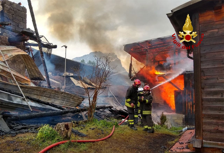 Colle Santa Lucia, incendio a 2 abitazioni e 2 fienili