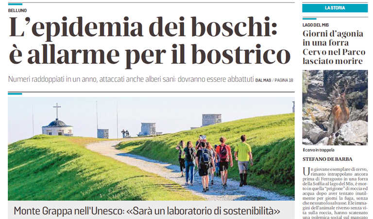 La Rassegna Stampa di RadioPiave inBlu condotta dai giornalisti dell’Amico del Popolo (al microfono Carlo Arrigoni) oggi, mercoledì 25 agosto, si apre parlando dell’allarme bostrico che interessa e mette in pericolo numerosi boschi del Bellunese dal momento che il coleottero attacca anche le piante in piedi e non solo gli schianti di Vaia. Ampio spazio naturalmente alla crisi dell’Afghanistan con la conferma di Biden del ritiro entro il 31 agosto e le preoccupazioni per la sorte di quel Paese e di chi lo vorrebbe abbandonare. Per quanto riguarda la pandemia l’attenzione oggi si concentra sulla discussione relativa alle misure necessarie per far ripartire la scuola e i trasporti pubblici a servizio degli studenti. Tra le cronache locali anche quella relativa al prossimo riconoscimento da parte dell’Unesco del Monte Grappa come Riserva della Biosfera, che i Comuni feltrini coinvolti vedono come una grande opportunità, e l’esasperazione di tanti allevatori locali per la difficoltà di proteggere i loro animali dalle predazioni dei lupi.