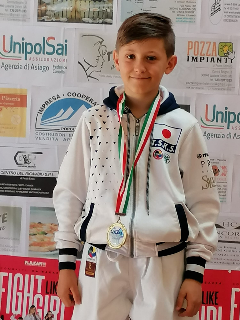Al Campionato regionale specialità kata Samuele Pinzon e Giada Gaspari si sono messi al collo la medaglia dal metallo più prezioso; il bronzo è andato a Letizia Zanetto.