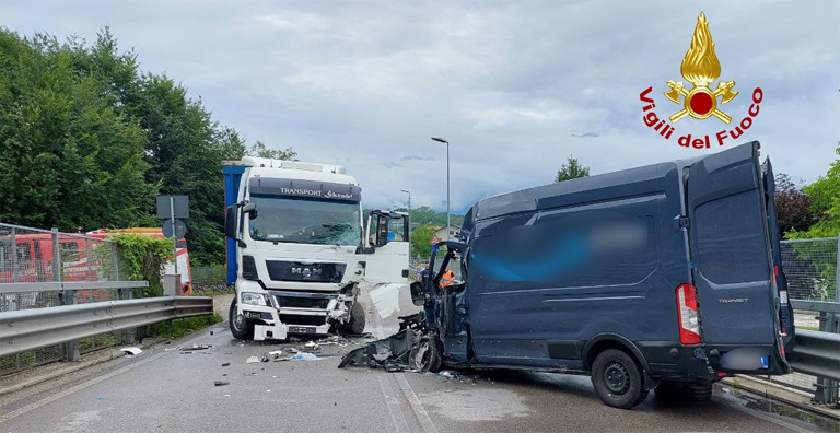 Alle 11.20 di oggi, martedì 7 giugno, i Vigili del fuoco sono intervenuti lungo la strada provinciale 1, in località Busche, in comune di Cesiomaggiore, per lo scontro tra un furgone di un corriere e un autoarticolato che ha provocato il ferimento dell’autista del mezzo più leggero. I pompieri, arrivati da Feltre e Belluno con l’autogrù, hanno messo in sicurezza i mezzi ed estratto il conducente del furgone, rimasto incastrato al posto guida. L’autista è stato preso in cura dal personale sanitario del Suem, stabilizzato e trasferito in codice rosso in ospedale. Illeso il conducente del mezzo pesante. I carabinieri hanno deviato il traffico ed eseguito i rilievi del sinistro. La strada è rimasta chiusa fino alla rimozione dei mezzi. Le operazioni di soccorso dei Vigili del fuoco sono terminate alle 15.30.