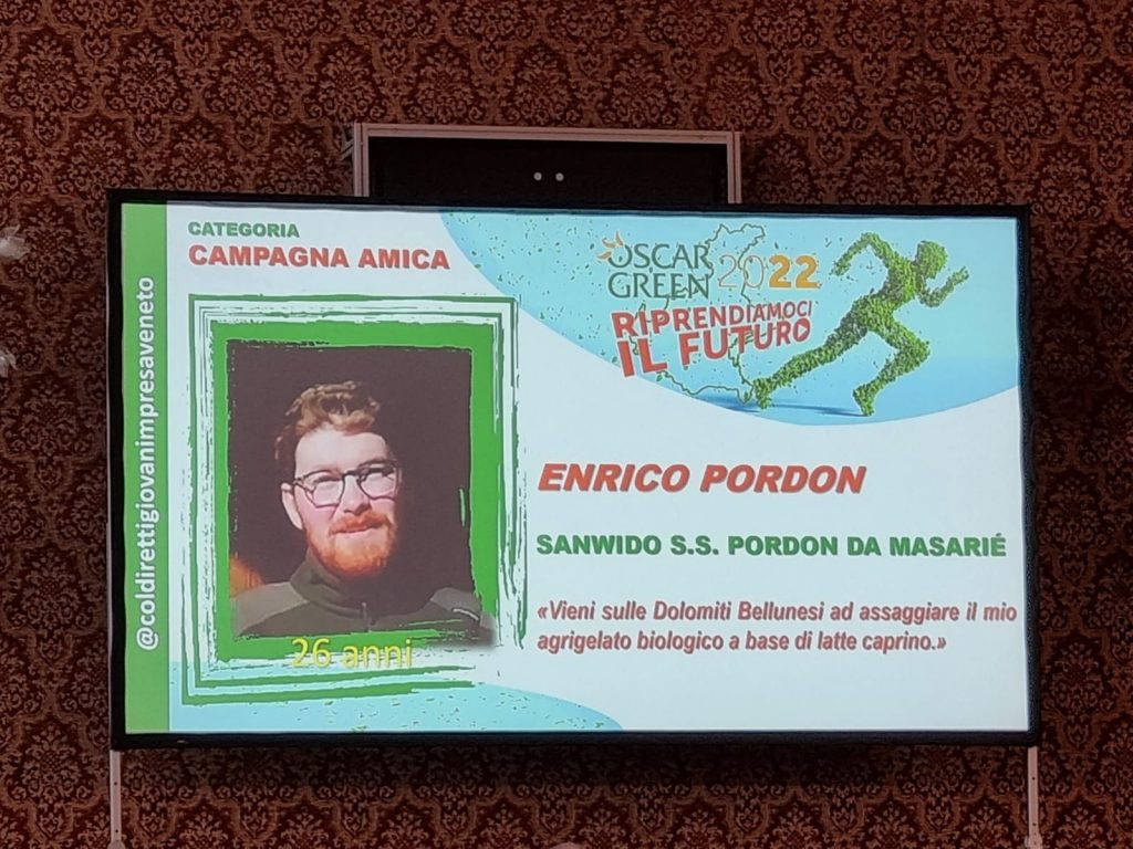 C’è anche una realtà bellunese tra le vincitrici del concorso Oscar Green, promosso da Coldiretti Veneto. Si tratta dell’azienda agricola Sanwido di San Vito di Cadore. Il suo titolare, Enrico Pordon, è stato premiato oggi, martedì 12 luglio, a Ca’ Corner, sede della Città Metropolitana di Venezia, in occasione della 16.ma edizione del concorso. La vittoria nella categoria “Campagna Amica”.