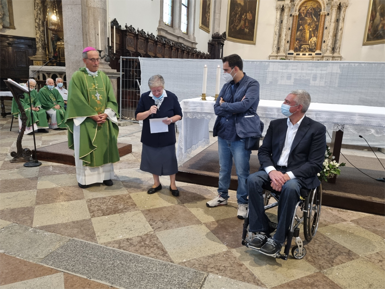 Riconoscenza e gratitudine alle Suore sono state espresse, a nome di tutta la comunità, anche dal sindaco Oscar De Pellegrin e dal vescovo Renato Marangoni che ha presieduto la Santa Messa attorniato da alcuni sacerdoti e che all’omelia ha sottolineato che la presenza delle Suore di Maria Bambina ha rappresentato una testimonianza particolarmente intensa e di grande valore per Belluno, sia per il suo tessuto sociale che per quello ecclesiale.