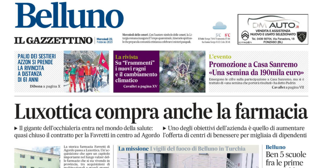 Bocche cucite dietro le pareti blu, ma a quanto pare la cosa è quasi fatta: Luxottica sta per acquisire la storica farmacia Favretti di Agordo per mettere in piedi un nuovo programma di welfare aziendale a favore dei suoi dipendenti. E mentre dal Cordevole giungono queste notizie (Gazzettino), in Alpago fa parlare di sé (Corriere delle Alpi) un’altra occhialeria importante della provincia di Belluno: Marchon vuole favorire l’impegno nel volontariato dei suoi dipendenti. Insomma, le aziende importanti curano sempre di più il benessere dei loro dipendenti e sembrano dettare la linea di un rapporto nuovo.
