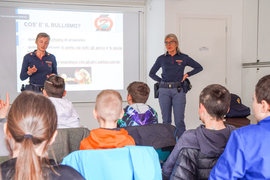 Oggi, 19 aprile, sono stati i piccoli studenti della IV elementare di Taibon Agordino a visitare Dolomiti Bus. Con loro, anche gli operatori della Polizia di Stato, per l’ultima lezione dell’anno scolastico in collaborazione con la Questura di Belluno. Gli agenti, attraverso video e slide, hanno fatto riflettere i ragazzi sulle conseguenze di certi comportamenti. E hanno affrontato anche il tema del bullismo come una delle possibili manifestazioni di aggressività messe in atto dai bambini e dagli adolescenti a scuola, nei luoghi di ritrovo giovanili, e anche sull’autobus.