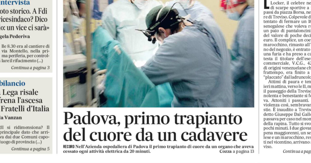 L’ospedale di Padova ha compiuto un’altra impresa, di rilievo nazionale e internazionale: ha eseguito un trapiantato di cuore da cadavere, l’organo era fermo già da 20 minuti. La notizia riguarda da vicino anche noi bellunesi, perché l’ospedale di Padova è vicino al nostro territorio, ma anche perché il direttore generale di quella Ulss è stato nominato anche commissario della nostra Ulss 1 Dolomiti: siamo nelle mani di una figura che ogni giorno lavora con l’eccellenza in Italia.