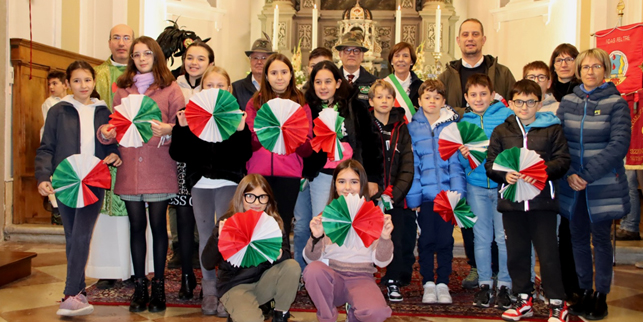 Al termine della santa Messa, la sindaca di Feltre Viviana Fusaro e il presidente dell’Ana cittadina Stefano Mariech hanno consegnato il Tricolore agli alunni della classe quinta.