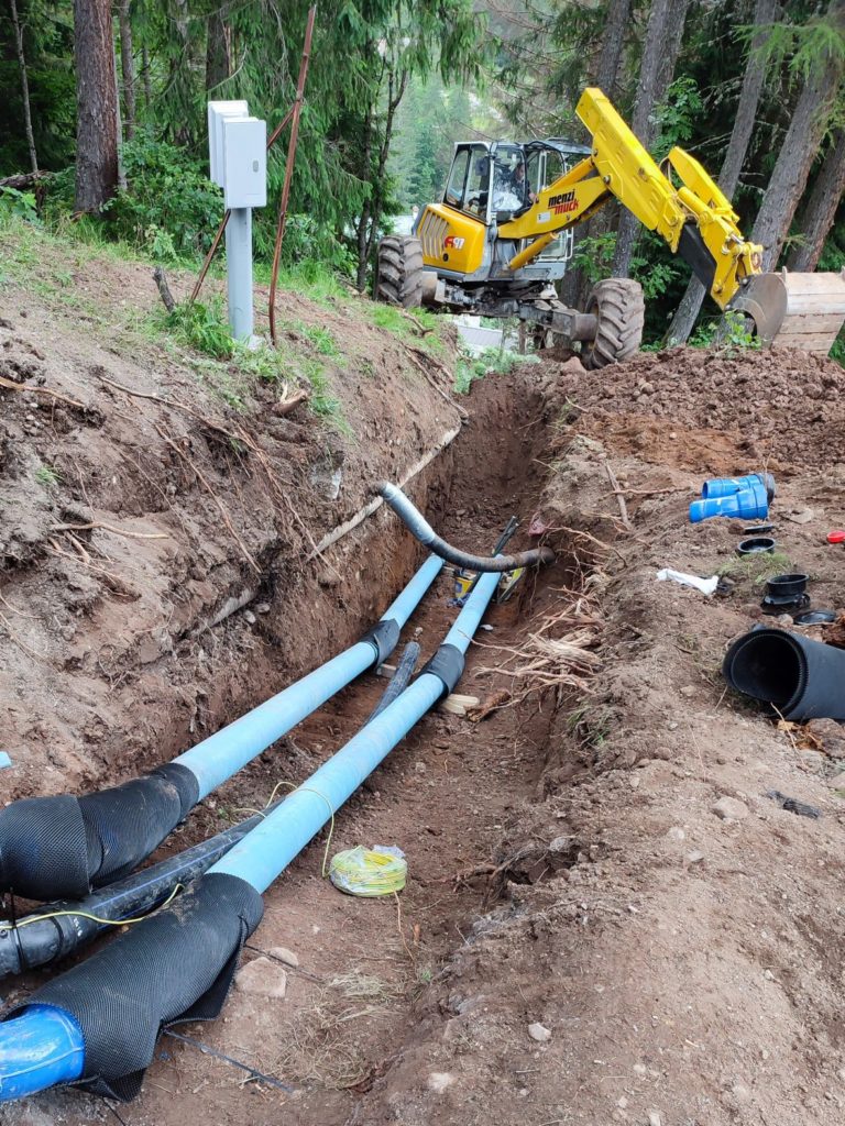 I lavori, avviati lo scorso maggio e durati complessivamente cinque mesi, sono stati eseguiti dall’impresa Tecnonord di Borgo Valbelluna. Particolarmente complessa l’esecuzione, per l’orografia dei luoghi, le forti pendenze e la limitata accessibilità, che hanno reso necessario l’uso di mezzi speciali quali l’escavatore ragno per le operazioni di scavo e l’elicottero e mezzi motorizzati per il trasporto dei materiali.