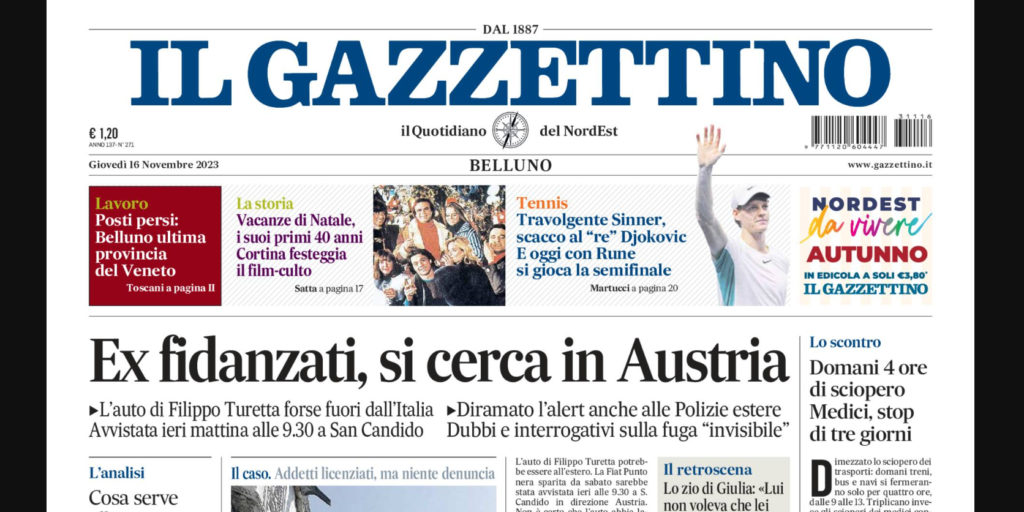 Anche questa mattina, verso le 7, il papà di Giulia Cecchettin ha rinnovato l’appello a segnalare il passaggio della Fiat Grande Punto nera targata FA015YE, l’auto di Filippo. Le telecamere l’avrebbero colta a San Candido, forse diretta in Austria.