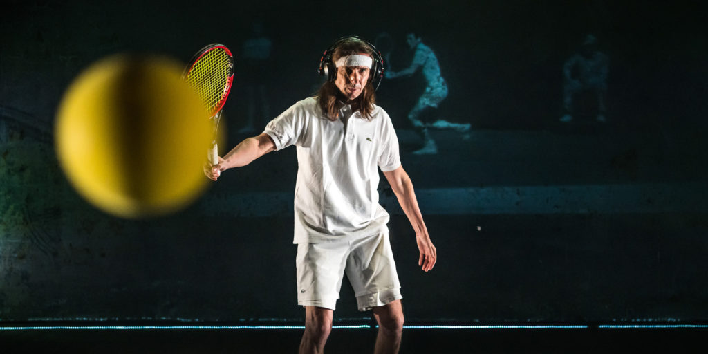 Un muro trasparente davanti al palco, una pallina da tennis che rimbalza incessantemente scandendo i ritmi del delirio sentimentale del tennista che sta giocando. Il racconto di una crisi esistenziale tra i palleggi di un atleta che affronta i suoi dubbi come ha sempre fatto: con una racchetta in mano.