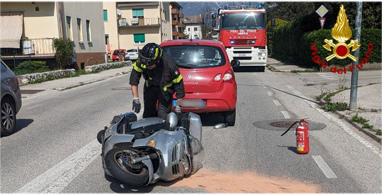 Nel primo pomeriggio di ieri, venerdì 12 aprile, i vigili del fuoco sono intervenuti in Via Monte Grappa, a Belluno, per un incidente tra uno scooter e un’automobile che ha provocato il ferimento di due persone. I pompieri, arrivati dalla centrale, hanno messo in sicurezza i mezzi, mentre i due feriti erano già stati assistiti dal personale del Suem e portati al Pronto soccorso per dei controlli. Le operazioni di soccorso dei vigili del fuoco sono terminate dopo circa un’ora con la messa in sicurezza dell’area.