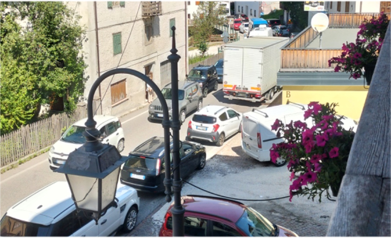 Il problema si acuisce nei momenti di massimo afflusso turistico, d’estate e d’inverno, ma è quotidiano per 365 giorni l’anno in corrispondenza della strettoia in centro ad Alleghe (vicino al municipio), soprattutto quando a incrociarsi sono un’auto e un mezzo pesante.