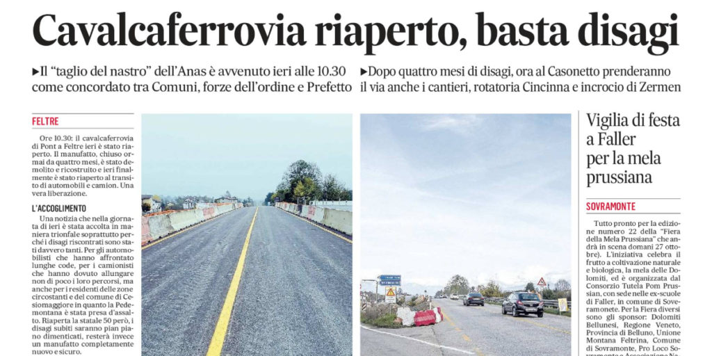 A Pont, tra Busche e Feltre, si passa di nuovo sopra la ferrovia: dopo quattro mesi di disagi, il percorso della Statale è stato ripristinato.