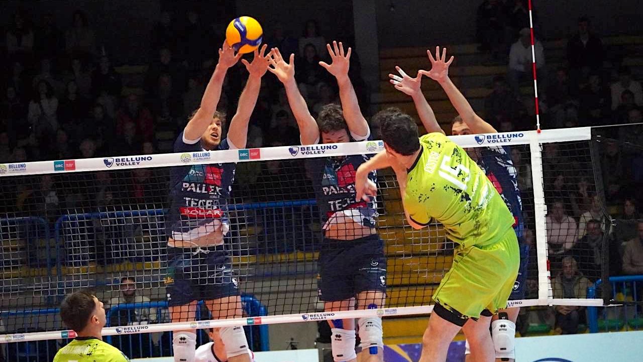 Nel terzo set il Belluno Volley riduce gli errori e rimette la testa avanti, anche in virtù di due punti in sequenza (fra i quali un “murone”) di Ferrato: 15-13. Saibene timbra il suo secondo ace di serata per il 19-16. I piemontesi replicano con il break di 5-2, che vale la parità, ma Loglisci e Mian garantiscono l’abbrivio vincente: 25-23. Nel quarto round, i ragazzi di Marzola doppiano i piemontesi sul 6-3 e sull’8-4. Acqui prova a risalire, ma Mozzato e soci hanno altre idee: 18-10 e chiusura ampiamente anticipata.