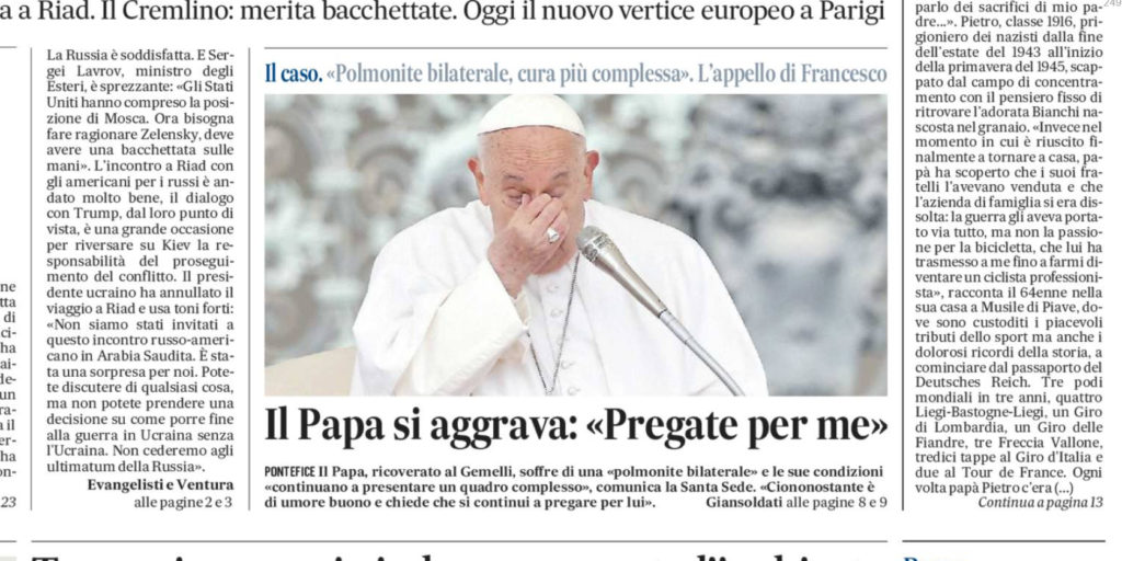 Preoccupano le condizioni di salute del Papa, affetto da una polmonite bilaterale. Anche da qui gli rivolgiamo un pensiero e un augurio.