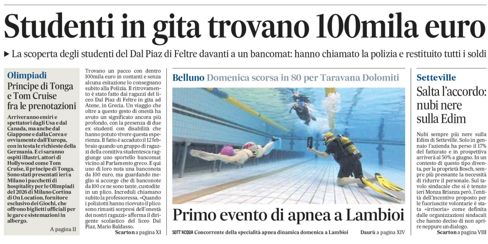 Ragazzi di Feltre in gita in Grecia trovano e consegnano un pacco con centomila euro.