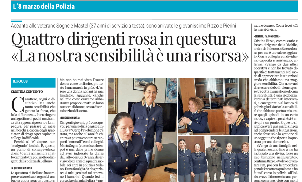 Per l’8 marzo, Giornata internazionale della donna, la Questura di Belluno sarà in piazza Piloni con il gazebo «Questo non è amore». Ieri lo sciopero e il flash mob della Cgil. E c’è preoccupazione per il Centro Antiviolenza gestito da Belluno Donna, costretto ad andare avanti a suon di proroghe per l’impossibilità di garantire il requisito delle 24h al giorno di apertura indispensabile per accedere ai finanziamenti.