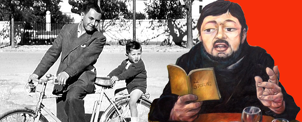 - La sua particolare cadenza nel predicare era arrivata a fornire spunto a un comico della Compagnia di Arte varia che, nei fuoriscena, era sollecitato a farne l’imitazione (che si troverà più avanti). ↩︎