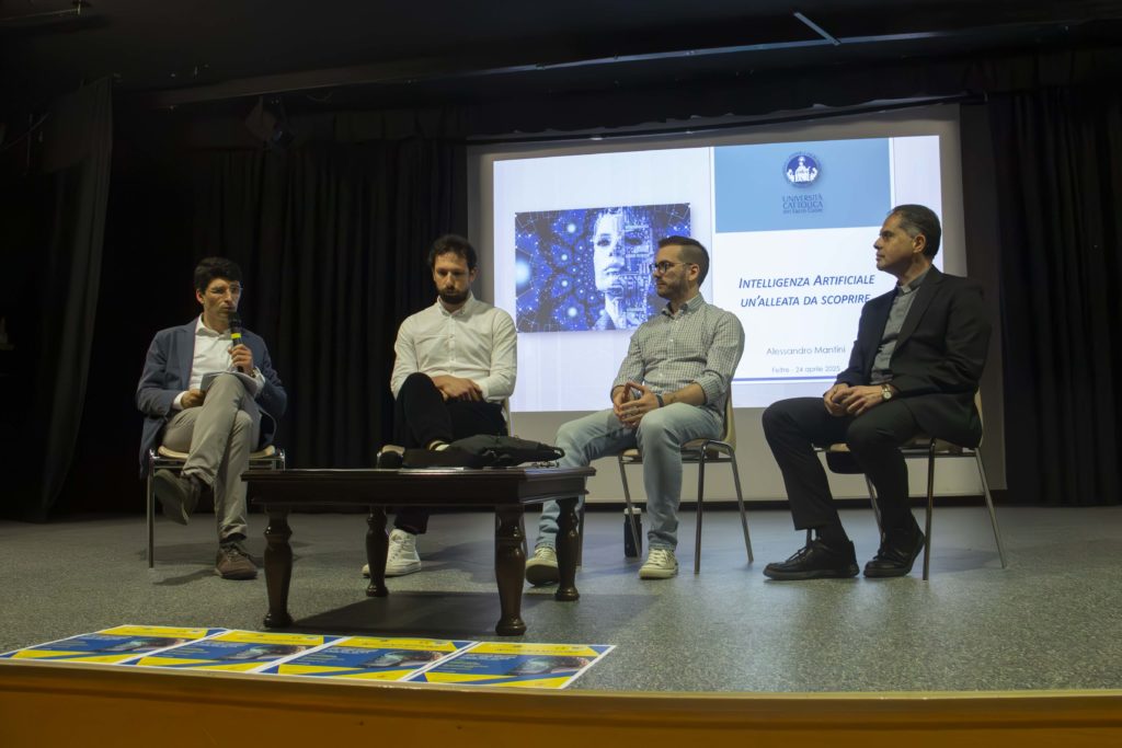 Ad aprire la serata, moderata dal feltrino Matteo De Boni, è stato padre Alessandro Mantini, assistente pastorale dell’Università Cattolica del Sacro Cuore di Roma e docente di Teologia e Intelligenza Artificiale: «L’intelligenza artificiale pone interrogativi all’uomo, tanto a chi la progetta quanto a chi la utilizza. L’orizzonte del suo utilizzo è quello del bene comune, ed è da questo che nasce la questione etica, che coinvolge creatori e utenti e che vede la tecnologia al servizio dell’uomo. A volte però assistiamo a quello che si chiama “avvolgimento”, cioè all’inversione di questo fenomeno e all’uomo che si mette al servizio della tecnologia; l’IA deve invece richiamare l’uomo a sé stesso, alla sua capacità di gestire la materia per il servizio all’umanità e per il vero progresso». Il binomio “scienza e fede” ha visto negli anni ridursi le distanze, e quindi ecco il legame tra teologia e intelligenza artificiale: «Questo connubio tra conoscenza, ricerca scientifica e teologia, cioè la seria riflessione su un Dio che si è fatto conoscere, permette un’apertura di mente straordinaria».