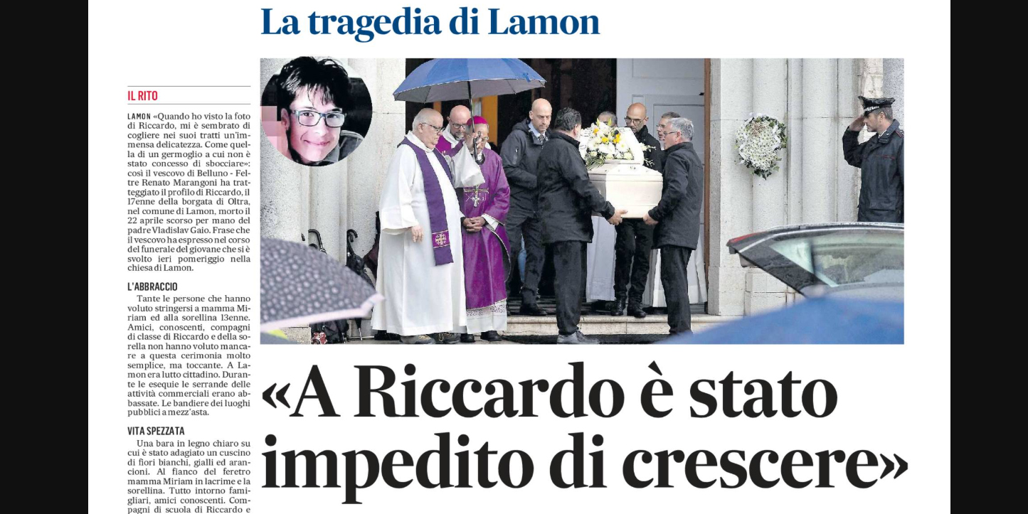 I funerali si terranno giovedì 8 maggio alle ore 15 nella Chiesa Parrocchiale di Voltago Agordino