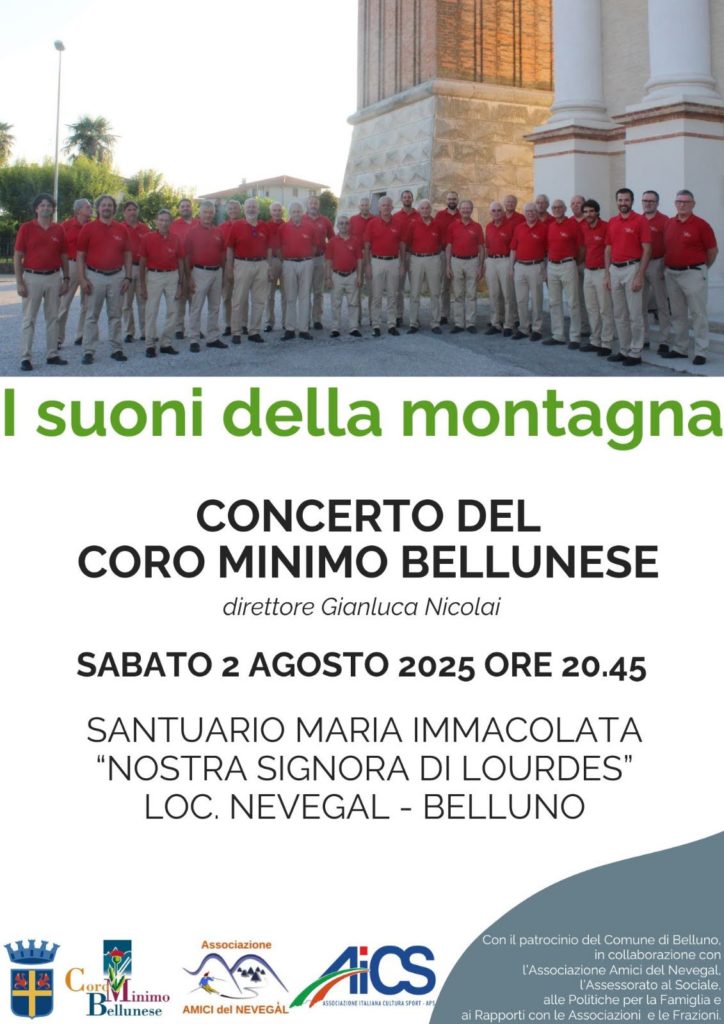 Ultima esibizione prima della pausa estiva per il Coro Minimo Bellunese, diretto da Gianluca Nicolai e presieduto da Ennio Da Gioz. Sabato 2 agosto, nella cornice del Santuario Maria Immacolata “Nostra Signora di Lourdes” al Nevegal, il gruppo ha partecipato alla serata “I suoni della montagna”, organizzata in collaborazione con l’Associazione Amici del Nevegal e con il patrocinio del Comune di Belluno.