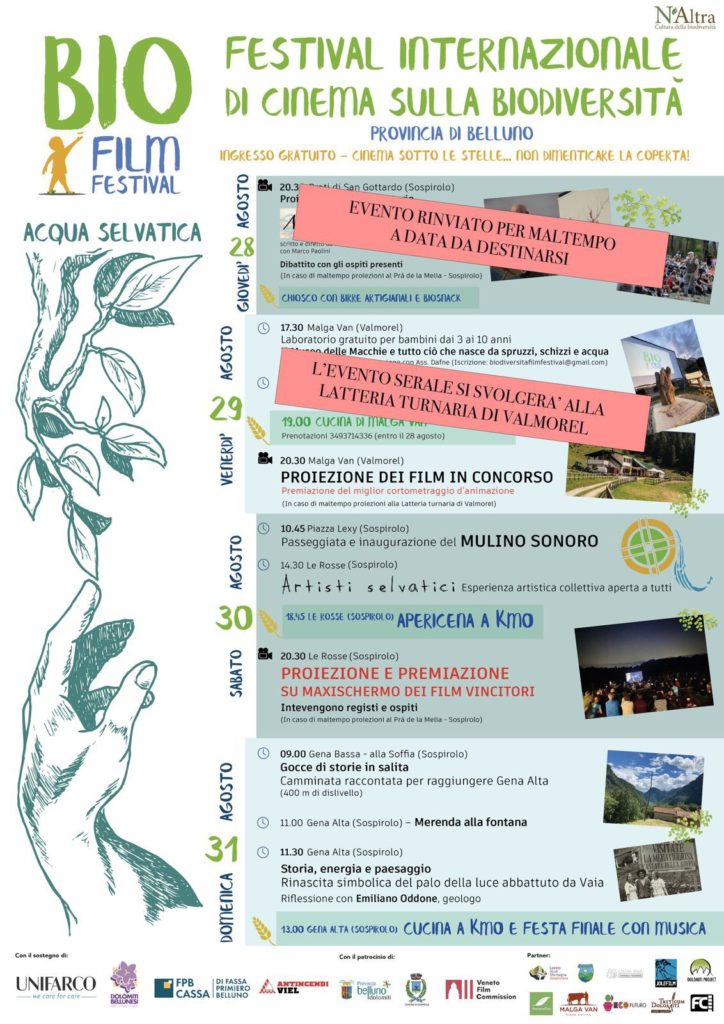 Torna il Bio Film Festival, giunto alla sua terza edizione. Da giovedì 28 a domenica 31 agosto l’iniziativa proporrà quattro giornate dedicate alla biodiversità, con proiezioni, laboratori, momenti di confronto e degustazioni di prodotti del territorio. Il tema scelto quest’anno è l’«acqua selvatica», filo conduttore delle attività organizzate dall’associazione N’Altra.