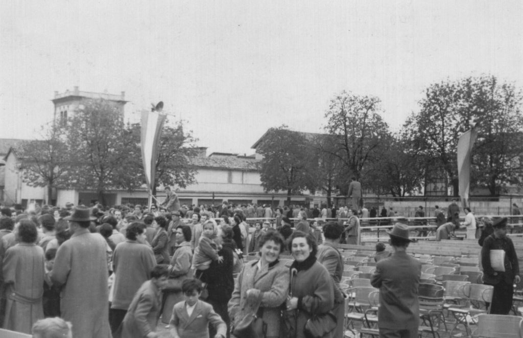 Il primo Maggio la Festa del Lavoro si celebrava, dal 1952, allo stadio del calcio1 dislocato dove oggi sorge il Parco Città di Belluno2 e dove si esibiva la squadra locale che militava in IV divisione. Allora, sul lato di nordest, verso le tribune scoperte, veniva installato un gran palco dove i politici locali e i funzionari della CISL tenevano i propri discorsi alternati ai suoni della banda cittadina, al cabaret locale del tempo e all’esibizione di cantanti, solisti e orchestrine. Il tutto condito dall’estrazione dei biglietti della lotteria del lavoratore, con migliaia di pacchi da ritirare e scartare. Quella era la mia passione, aprire i pacchi della fortuna!