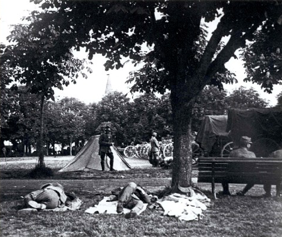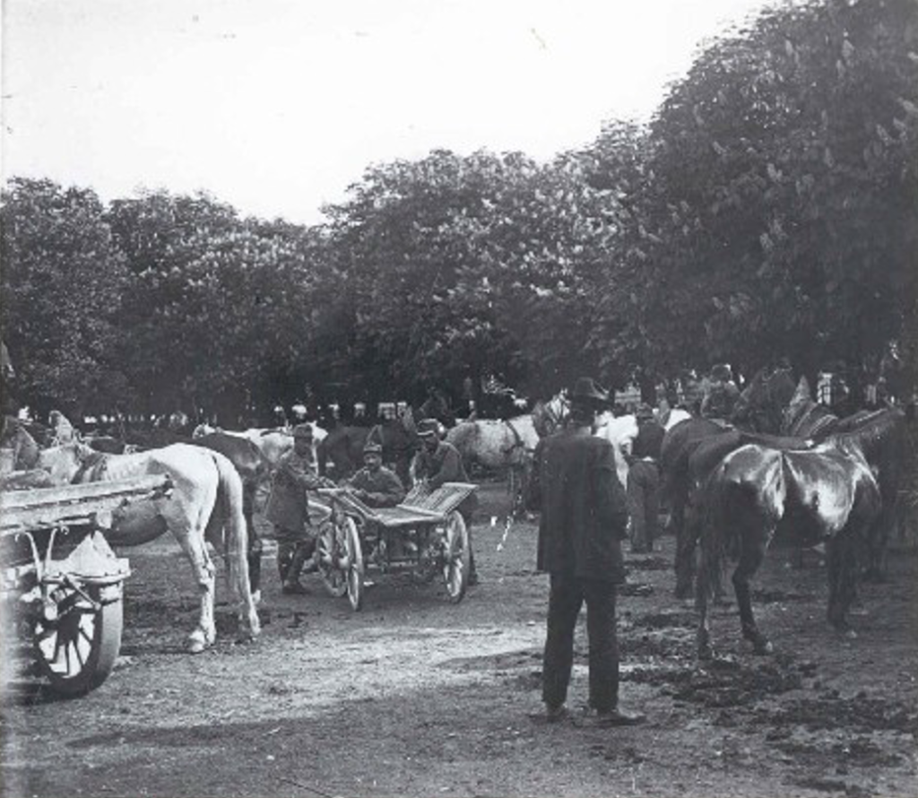 Dalla gran piazza fuori le mura, dal Cinquecento sede di feste, fiere e mercati d’ogni genere, nell’ultimo secolo si erano spostate progressivamente verso l’esterno le attività ‘pesanti’. Così il mercato dei bovini è rimasto in Piazza Piloni fino agli anni Cinquanta per finire infine al nuovo Foro Boario, dove poi è sorto il Palazzetto dello Sport. Così nella grande piazza, la cui area è contigua al nostro parco, è subentrato il mercato settimanale delle merci su bancherella. Sul tema, Ivano Pocchiesa ha realizzato un bel film documentario negli anni Sessanta, oggi restaurato come ottima testimonianza.