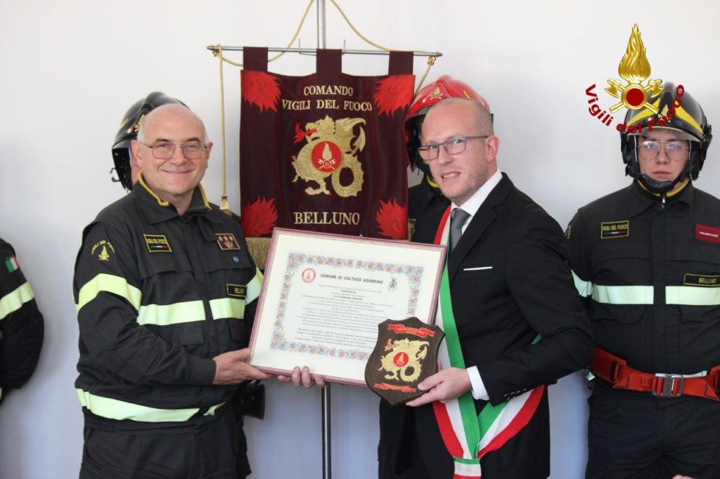 Sabato 18 ottobre 2025, nella frazione di Frassenè, la civica Amministrazione di Voltago Agordino ha conferito la cittadinanza onoraria al Comando provinciale dei Vigili del Fuoco di Belluno. Il riconoscimento è stato assegnato come segno di gratitudine per l’impegno costante a favore della comunità locale, in particolare durante l’incendio della notte tra il 3 e il 4 gennaio scorsi.
