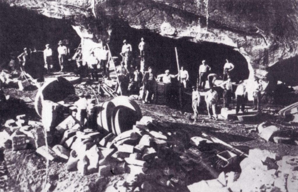- Ciascun cavatore era in società con 3-4 molàs che lavoravano “a metà” con lui; in pratica, poiché egli procurava loro la materia prima, aveva diritto alla metà di quanto si ricavava dalla vendita del prodotto finito, mentre i suoi soci, addetti a costruire le mole all’esterno, si dividevano l’altra metà. Probabilmente, con questo migliore trattamento, si compensava la maggiore pericolosità del lavoro e il rischio di contrarre più facilmente la pussiéra (silicosi) da parte di chi svolgeva la sua attività all’interno delle cave. Ogni molàs aveva i suoi attrezzi, i più importanti dei quali erano il mai, la maiòla, e la patirlòca, simili a picconi anche se più piccoli, la mazìa (sorta di martello), il zérzen (compasso), i conci (cunei). ↩︎