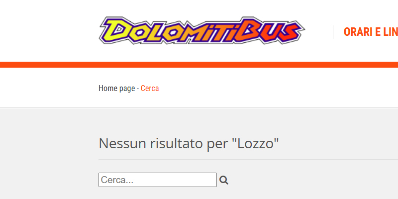 Si può aggirare il problema ‘‘scavando’’ nel sito grazie a Google, così: site:dolomitibus.it lozzo