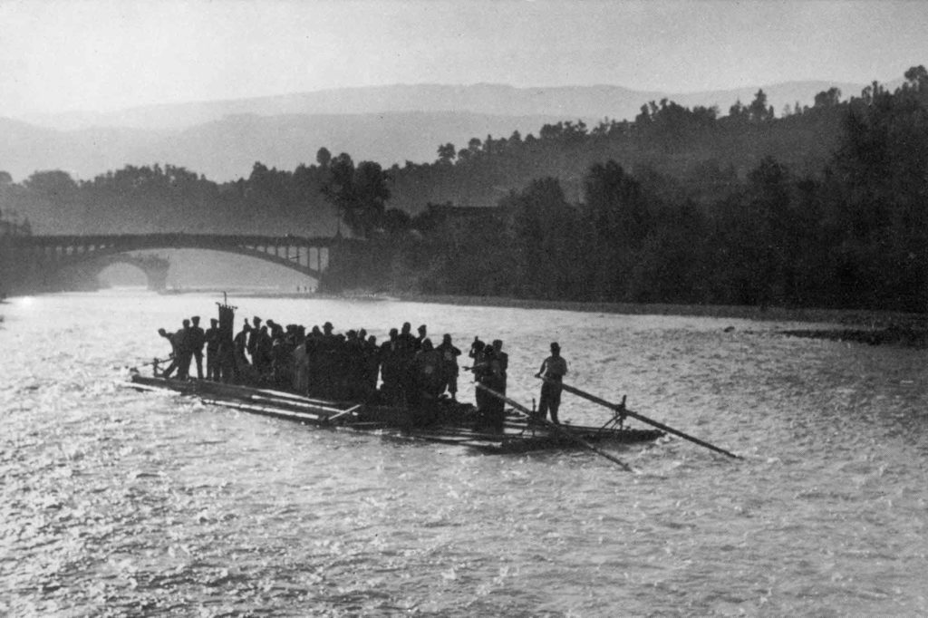 Il fatto più eclatante dell’estate del ‘60 fu però l’attesa e l’arrivo di Thomas Pellegrini che aveva deciso di costruire una zattera e di fluitare con essa sulla Piave da Belluno alle crode di Fener. Thomas, tra i giovani bellunesi, godeva già una certa fama artistico-sportiva. Si cimentava col dialetto e scriveva poesie come d’altronde avevo cominciato a fare anch’io ripensando a quel ‘El scherzo de la luna[5]’ ascoltata da Ugo Neri qualche anno prima a teatro.