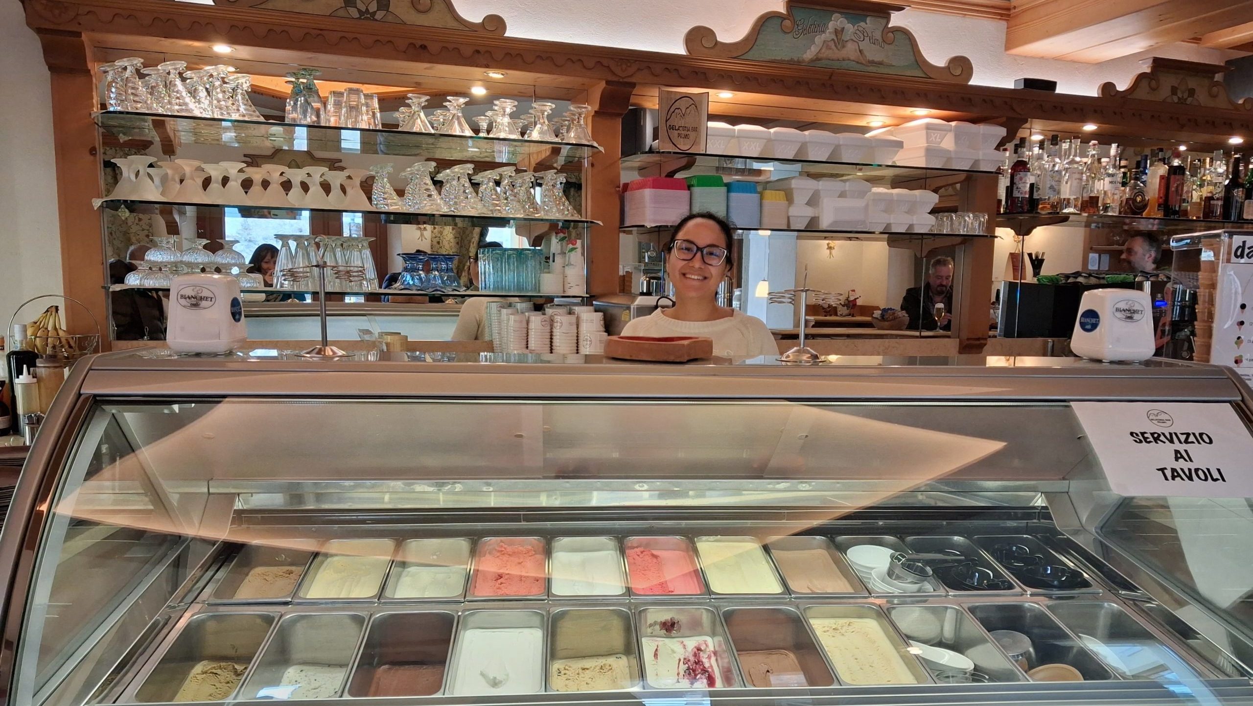 Vanessa, giovane mamma, porta avanti la gelateria di famiglia