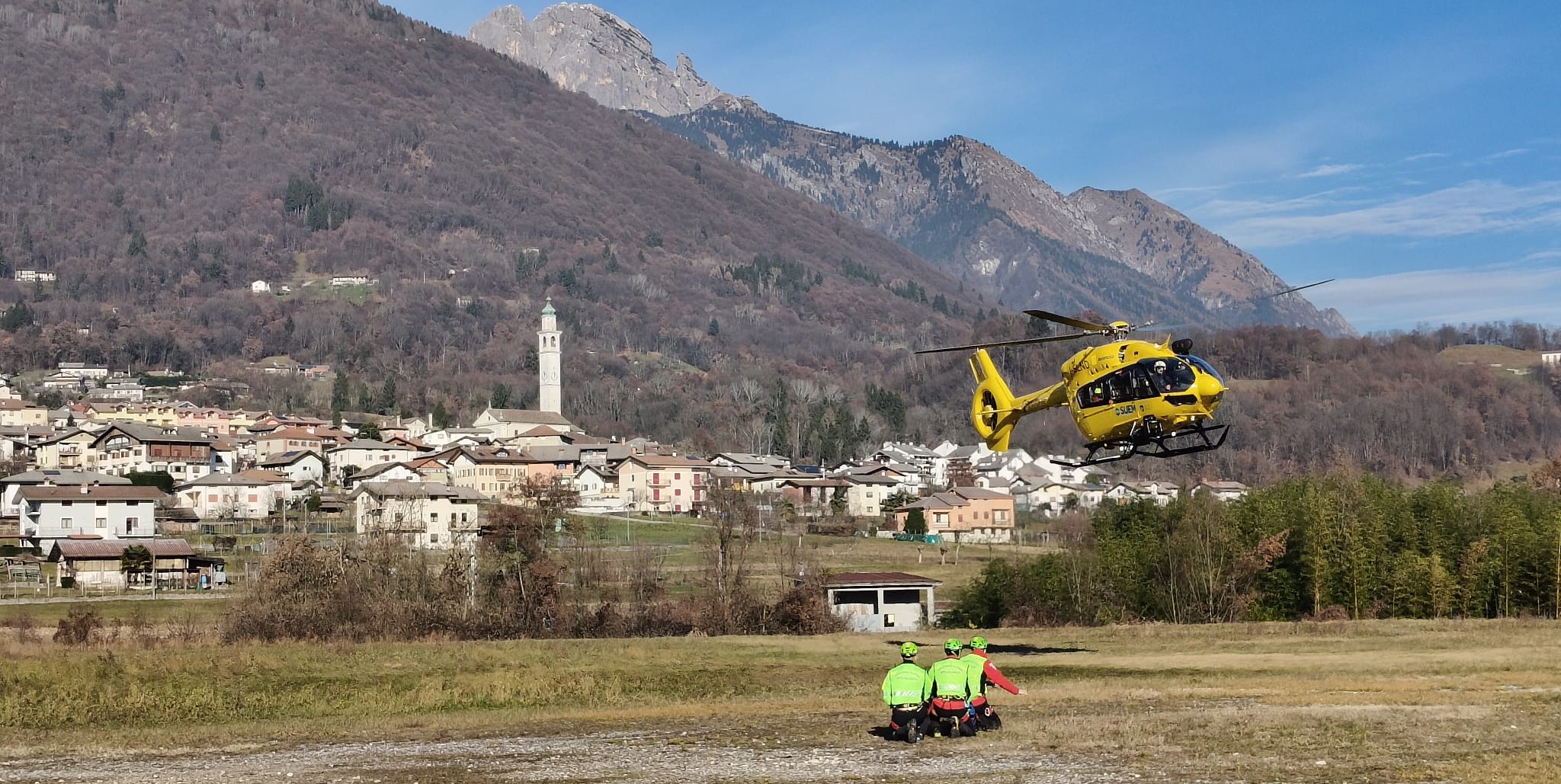 Fornite le coordinate approssimative della zona, è decollato l’elicottero del Suem di Pieve di Cadore, che ha individuato l’infortunato e ha sbarcato tecnico di elisoccorso, medico e infermiere con un verricello di 50 metri. L’eliambulanza è successivamente rientrata per imbarcare due volontari del Soccorso alpino di Feltre, mentre altri tre soccorritori attendevano al campo sportivo di Cesiomaggiore per eventuale supporto.